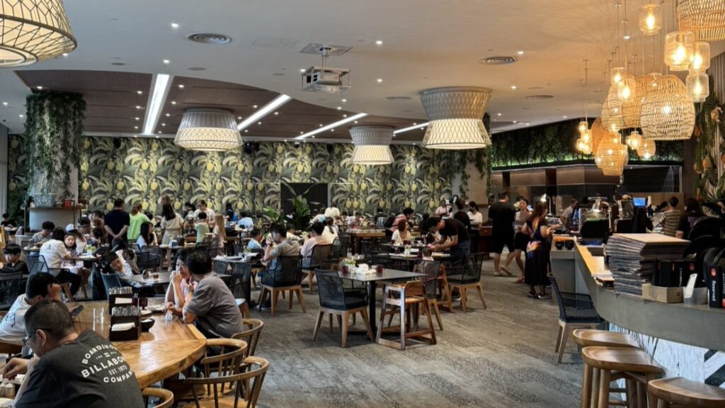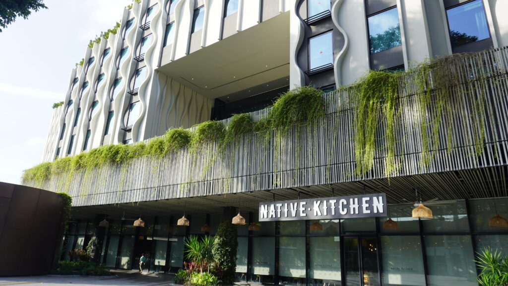 朝はホテルの朝食会場「ネイティブキッチン」へ。子ども用の椅子やシリアル、フルーツも揃っていて、家族みんなでゆっくり食事ができました。ヌードルステーションではその場で麺を茹でてラクサを提供してくれます。